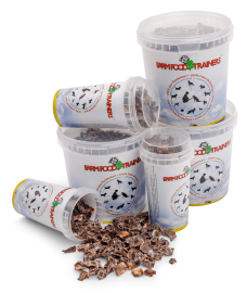 Under en längre tid har Farm Food-teamet varit på jakt efter ett nyttigt belöningsgodis. Det blev Trainers, rent oxhjärta, torkat och skuret i små, lätthanterliga bitar. Denna produkt har också mottagits mycket positivt av användarna, både ägare och hundar.